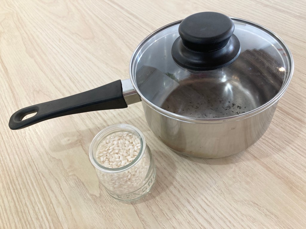 You can use whatever pot you have in your kitchen as long as it comes with a lid. I am not one of those Japanese moms with a fancy rice cooker either, as, being a minimalist, I hate to lose the precious counter space for a machine that serves only one purpose!
