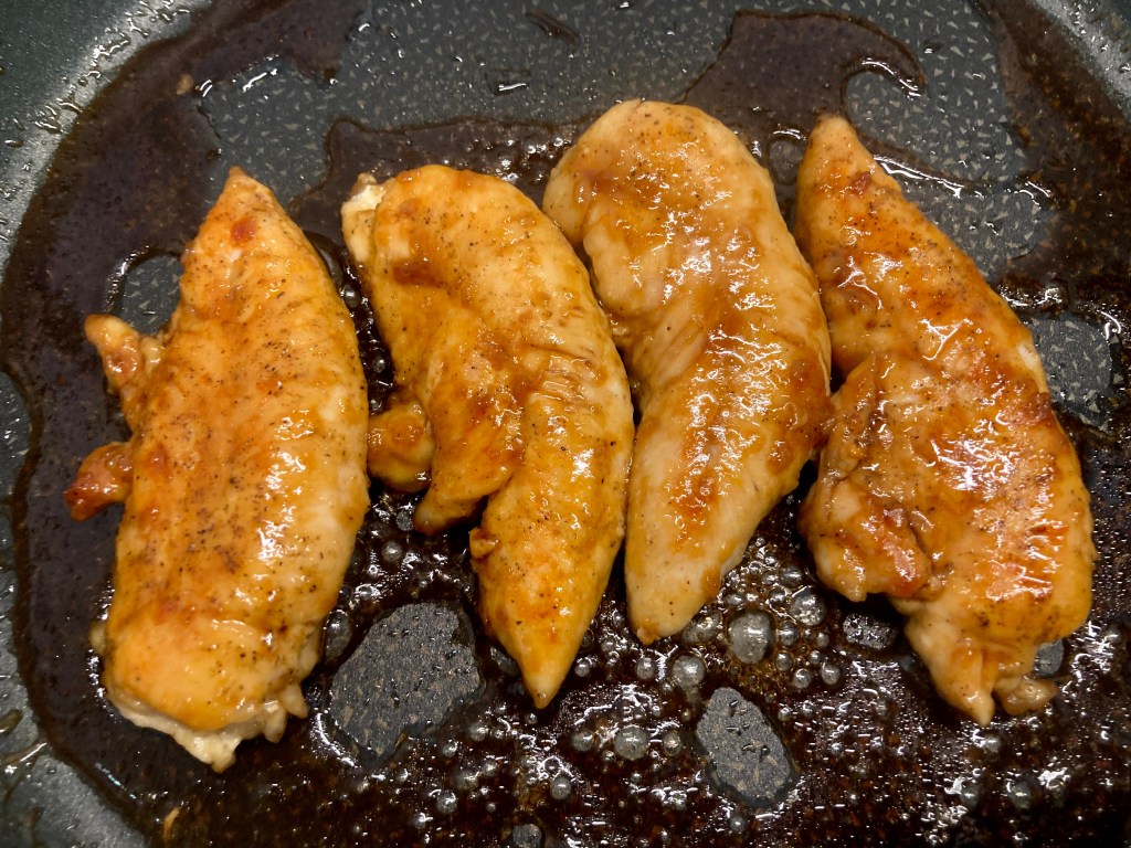 4. Cook covered on medium. Once you flipped all the chicken, cover the pan and cook for another 3-5 minutes on medium heat. If you don’t have a lid, put a piece of aluminum foil over the chicken.