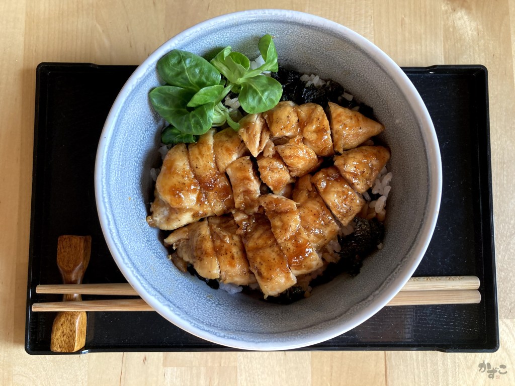 Let’s take your teriyaki chicken to the next level! Teriyaki Chicken Don is another popular dish in Japan and consists of finely sliced strips of delicious teriyaki chicken over a bowl or rice (“Don” is short for “Donburi“, which means a big bowl).