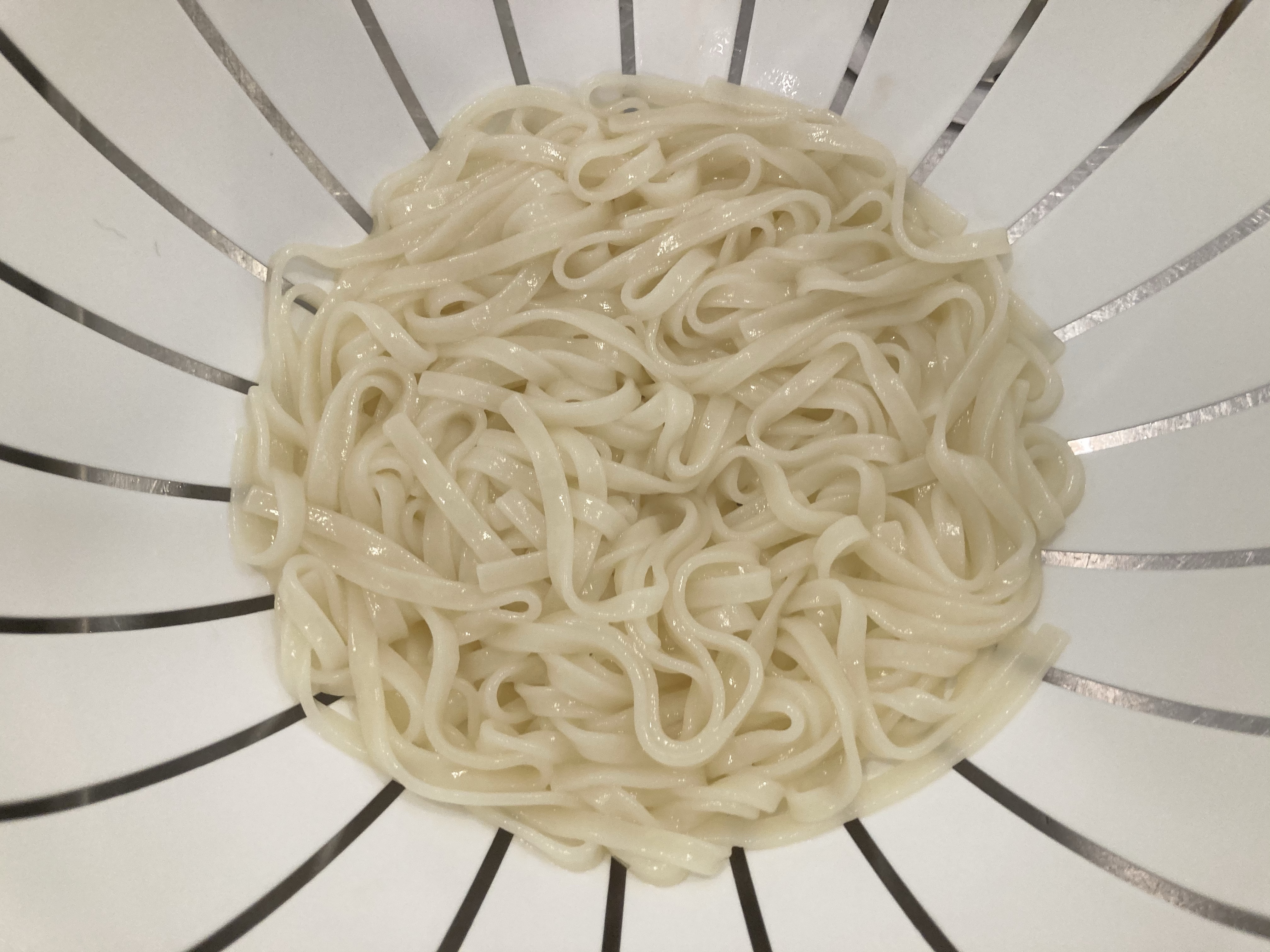 4. Drain water. When the udon is cooked, drain the water well. If you want to serve it cold, rinse it with cold running water (and also cool down the soup in the fridge).