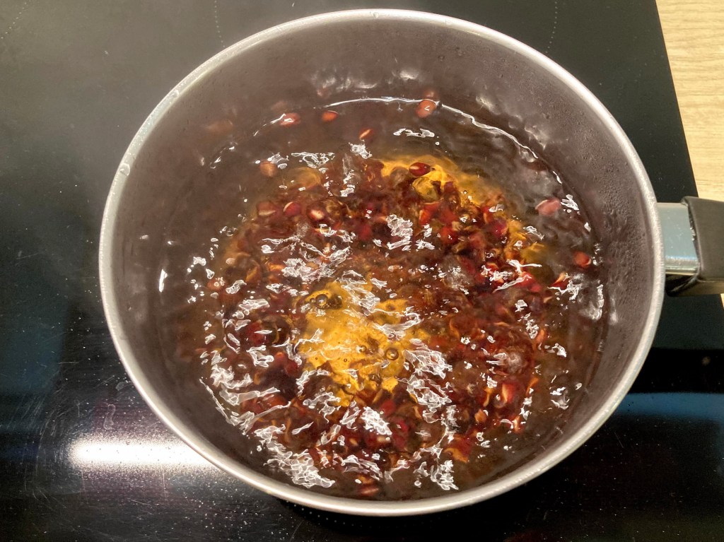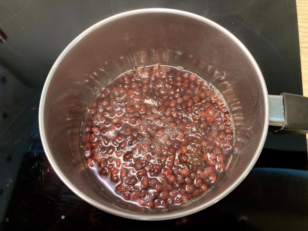 4. Boil again. Put back the azuki in the pot and add clean water, but this time only enough to cover the azuki. Bring it to a boil on medium heat, then simmer it on medium-low heat for 40-60 minutes.