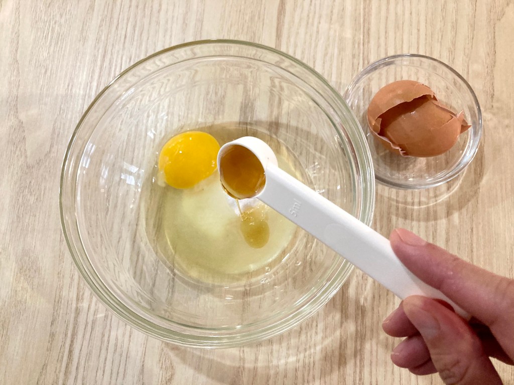 1. Mix egg, sugar & honey. Mix egg 1, sugar2 and honey3 in a bowl.