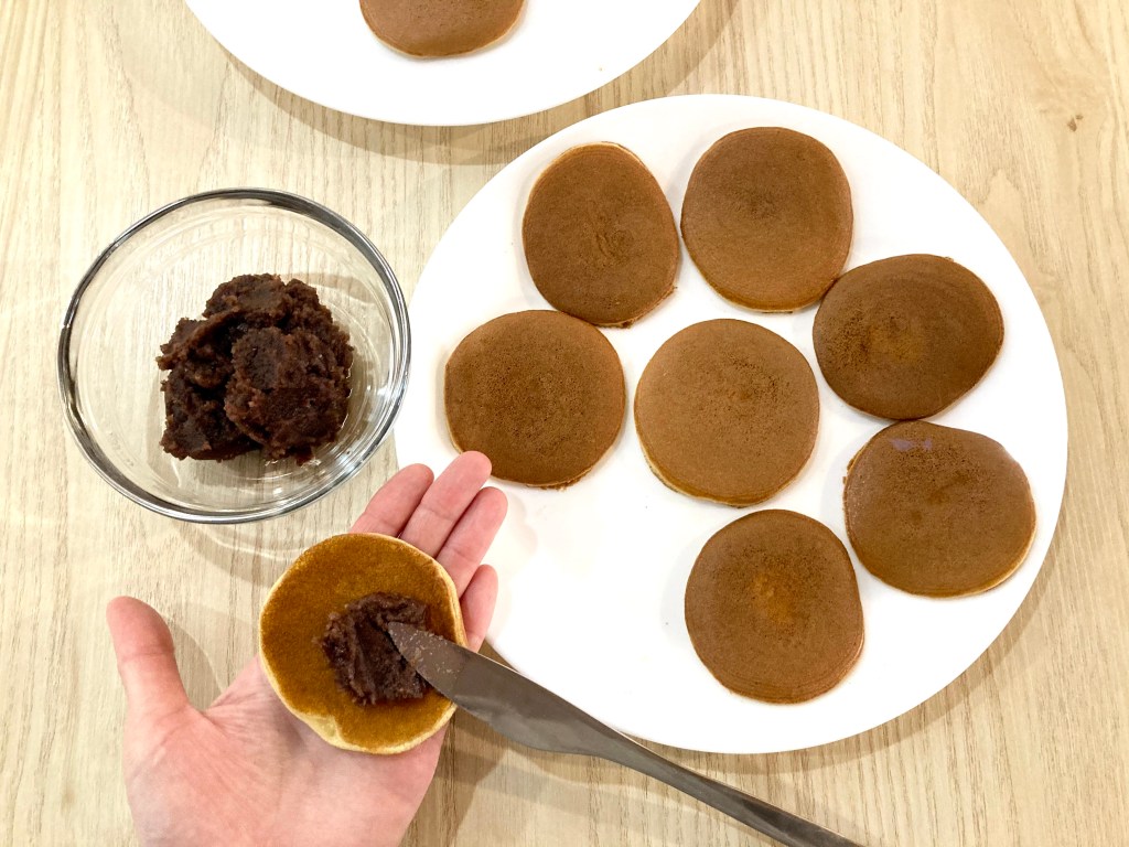 Traditionally, baking soda is used for making Dorayakis as it adds the dark-brown color and a little bit of bitterness, which are the key signatures of dorayakis. I usually dissolve baking soda first in water before adding to the batter, to help it mix better. Baking soda can be substituted with baking powder, but double the quantity as baking powder is not as powerful as baking soda. The pancakes will look a little lighter in color and become fluffier, but you can more or less achieve the similar result.