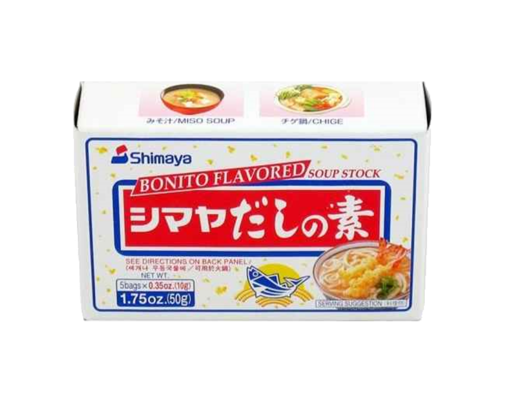 Dashi (出汁: /dä′shē/) Dashi, or the Japanese soup stock, is typically made of fish or a kelp called Kombu, which adds Umami. You can make your own soup stock of course, but when you don’t have time or ingredients, this ready-to-use Dashi power comes in really handy. Shimaya is the Japanese version of Knorr and is sold overseas (usually at a Japanese, Chinese or Asian grocery store). If you can’t find it anywhere nearby, Amazon sells it, too.